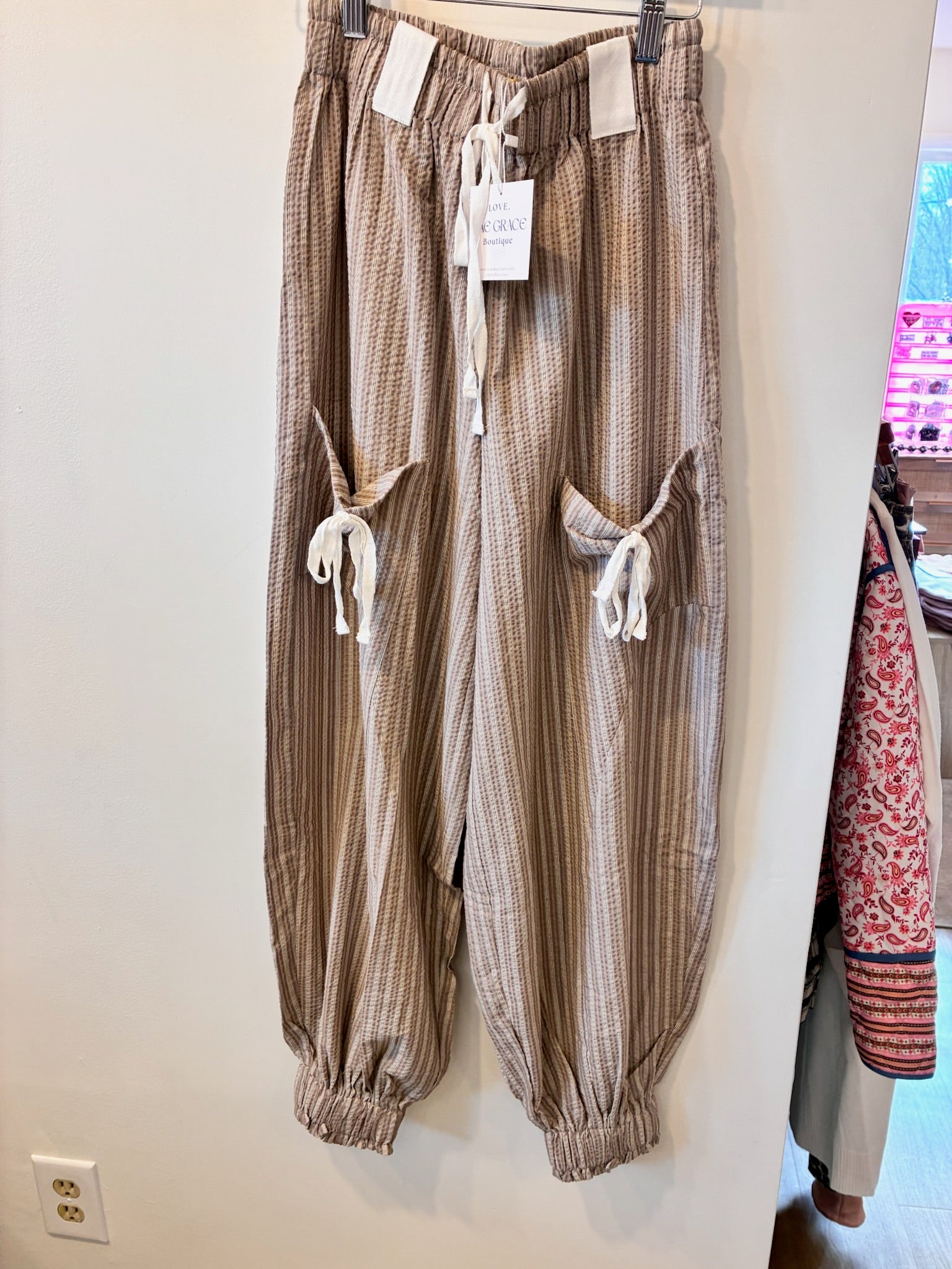 Sandstone Tie-Pocket Joggers (Taupe Stripe)